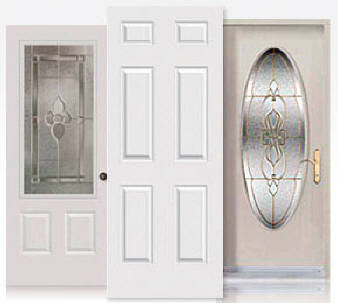 Steel Doors are the most economical choice. A steel door is a foam filled wood frame door covered with a thin steel sheet. The styles and rails (top, bottom and sides) are made out of wood and are typically primed white. Steel doors need to be painted within a short time after installation.